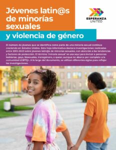 El número de jóvenes que se identifica como parte de una minoría sexual continúa creciendo en Estados Unidos. Esta hoja informativa destaca investigaciones realizadas entre 2013-2023 sobre jóvenes latin@s de minorías sexuales, con atención a las tendencias y factores de protección. El término ‘minoría sexual’ se usa aquí para incluir a personas lesbianas, gays, bisexuales, transgénero, o queer, aunque no abarca por completo a la comunidad LGBTQ+. A lo largo del documento, se utilizan diferentes siglas para reflejar las investigaciones.