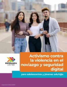 Una relación de noviazgo saludable se basa en tener el respeto mutuo, espacio para tus propios intereses y desarrollo como individuo, y la libertad de tomar decisiones autónomas sobre tu cuerpo, expresión personal y dispositivos electrónicos. Para obtener más información sobre la violencia psicológica, física, sexual, y digital en el noviazgo, consulta la hoja informativa de Esperanza United sobre el noviazgo adolescente y la hoja informativa para jóvenes latin@s de minorías sexuales.